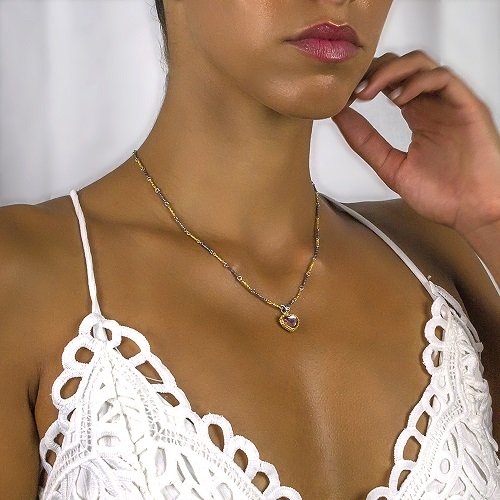 Reversible Pendant Heart with Tricolour Chain and Swarovski Crystals M102