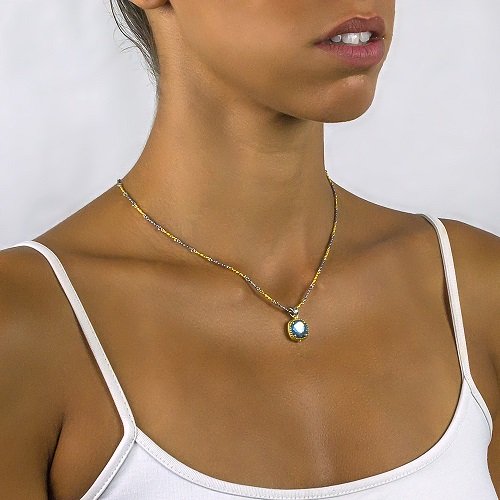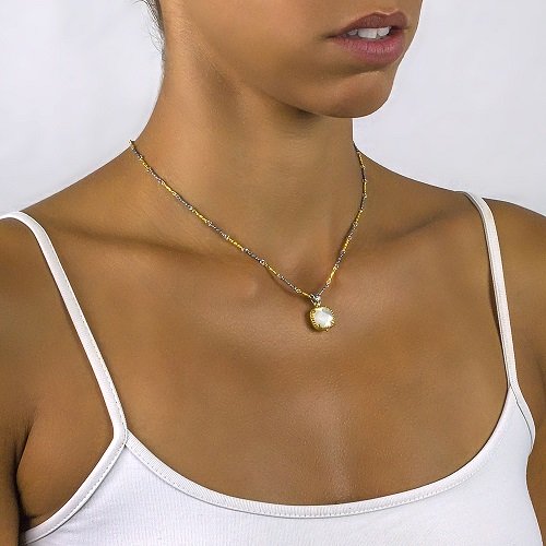 Reversible Pendant with Crystal, Mother of Pearl & Tricolour Chain M116-1