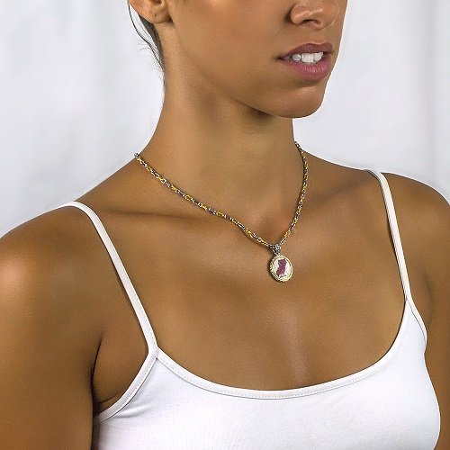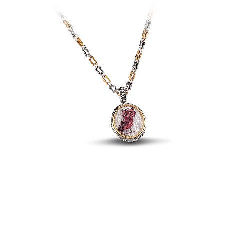 Reversible Pendant with Swarovski Crystals - Tricolour Chain & Owl Motif M82