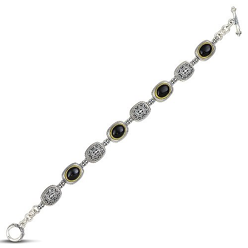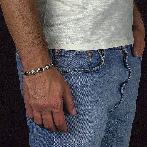 A wonderful chain bracelet with oval black onyx in gold-plated crowns, comes to complete the men's collection Anax.