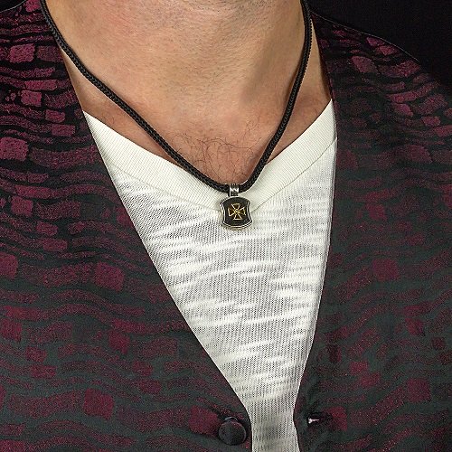 Pendant made of sterling silver and decorated with a gold-plated cross on top in black platinum insert, inspierd by Byzantine and medieval designs.