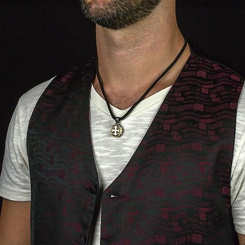 An exceptional sterling silver pendant from the Anax collection, with ornate enamel touches on the top. The locket pendant has inside the representation of Saint George.