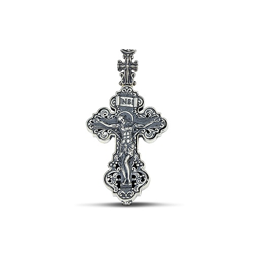 Sterling silver cross, inspired by Byzantine Orthodox desings with emphasis on detail.
