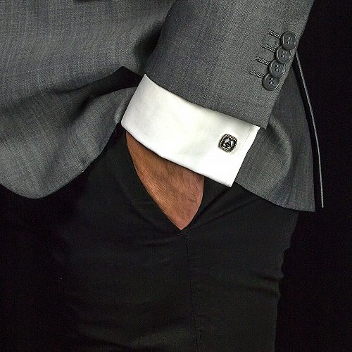 A separate pair of cufflinks with the symbol of masonic, which is the ruler, the diabetes and the latin letter G. There are many interpretations of where the letter G comes from, but the most common are either from the word "God"or from the word "Geometry"