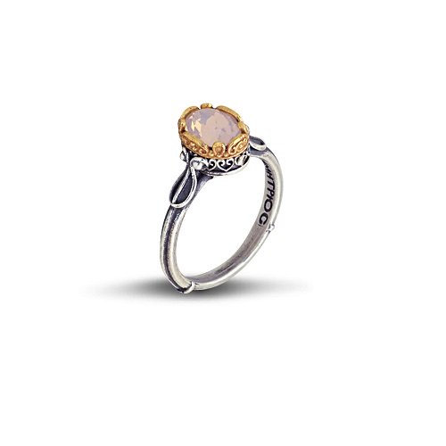 A fine single stone small cocktail ring with oval pink opal Swarovski crystal, that can make as well the main piece of your stackable rings collection.